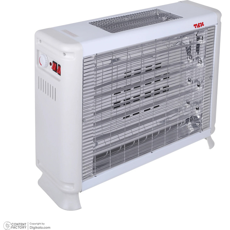 دستگاه دارای کلید تنظیم حرارت در دو سطح (کم و زیاد) است تا کاربر بتواند میزان گرمایش را متناسب با نیاز خود تنظیم کند. همچنین مجهز به ترموستات ایمنی است که در صورت افزایش بیشازحد دمای بدنه یا افتادن دستگاه، جریان برق را بهطور خودکار قطع میکند تا از خطرات احتمالی جلوگیری شود.